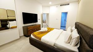 Ubicado a 10 km de The Dubai Fountain, el elegante apartamento de 2 dormitorios con balcones privados y lujo en suite en Meydan Avenue ofrece un alojamiento espacioso con aire acondicionado en Dubái. Este apartamento cuenta con piscina privada y aparcamiento privado gratuito, incluyendo una habitación con vistas desde su balcón.