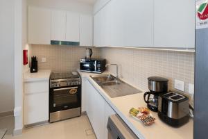 Guests have access to several onsite facilities such as an outdoor swimming pool complemented by a fitness centre. The building also offers lift access along with free private parking on site. Complimentary WiFi is available throughout the entire property while a television is provided inside the apartment for entertainment.