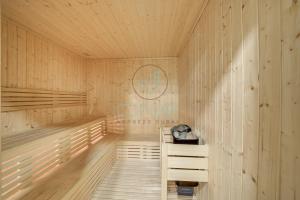 Die voll ausgestattete Kochnische beinhaltet Backofen, Herdplatte, Mikrowelle, Kühlschrank, Kaffeemaschine, Wasserkocher und Toaster sowie einen Esstisch. Das Badezimmer ist mit Badewanne inklusive Duschfunktion ausgestattet, zudem stehen kostenlose Pflegeprodukte wie Shampoo und Conditioner zur Verfügung. Weitere Annehmlichkeiten umfassen eine Whirlpool-Badewanne im Zimmer sowie eine private Sauna ebenso wie Körperseife und Bidet-Einrichtungen. WLAN nutzen Sie kostenfrei in allen Bereichen, private Parkplätze sind ebenfalls kostenlos vor Ort vorhanden.