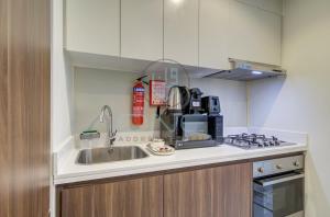 Das elegante 1-Zimmer-Apartment Vera Residences Stay in Dubai verfügt über einen privaten Pool und Wellnesseinrichtungen. Es liegt nur 1,2 km vom Dubai Fountain und 1,4 km vom Dubai Mall entfernt. Das Apartment bietet ein Zimmer mit Balkonzugang und Blick auf den Pool.