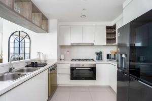 Внутри гостей ждут три спальни и четыре санузла с ванной комнатой. Во всех санузлах предоставляются бесплатные туалетные принадлежности: шампунь, кондиционер для волос, мыло для тела и фен. Современно оборудованная кухня включает мини-кухню с духовкой, плитой, микроволновой печью, холодильником и посудомоечной машиной, также имеются чайник и кофеварка вместе с необходимой посудой для комфортного приёма пищи.