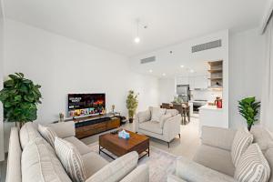 Die geräumige Wohnung Elegant 2BR in Downtown Dubai l Walk to Dubai Mall befindet sich nur 1,2 km vom Dubai Mall entfernt und bietet Klimaanlage sowie Gartenblick. Die Unterkunft umfasst zwei Schlafzimmer und drei Badezimmer mit Stadtblick vom Balkon.