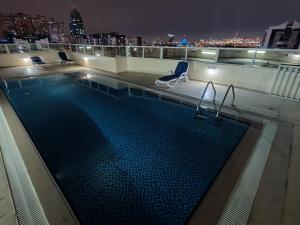 Le WiFi est accessible gratuitement dans tout l’appartement. Les services essentiels incluent une réception ouverte 24h/24 proposant un enregistrement express aller-retour. On y trouve aussi un service bagagerie , accessibilité aux personnes à mobilité réduite , blanchisserie , ascenseur desservant les étages supérieurs , extincteur dans l’unité , détecteurs de fumée , adaptateurs électriques , parking privé sur place avec location automobile disponible sur demande. Une terrasse ensoleillée complète l’espace piscine sur le toit tandis qu’un café sur place accueille les résidents durant leur séjour.