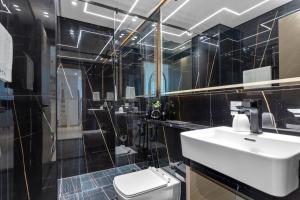 The apartment boasts one bedroom equipped with two beds and a bathroom featuring a shower. The fully appointed kitchen contains an oven, microwave, stovetop, refrigerator, toaster, coffee machine and electric kettle alongside comprehensive kitchenware. Additional in-room amenities include air conditioning, sofa bed, washing machine, iron with ironing board, safety deposit box, feather pillows and linens to ensure maximum comfort.