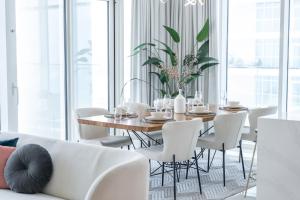 Die klimatisierte Unterkunft Elegant Seaside Living 3-Zimmer-Apartment Emaar Beachfront by Suiteable in Dubai verfügt über einen eigenen Pool und umfasst ein Zimmer. Das Apartment bietet Flussblick vom Balkon sowie kostenfreie private Parkplätze und kostenloses WLAN.