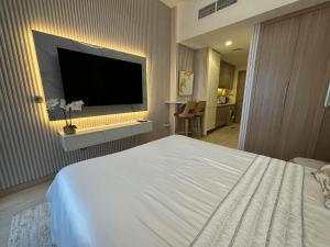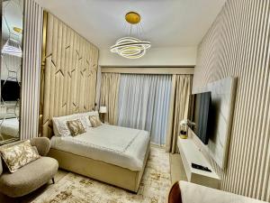 Apartament znajduje się również 14 km od Dubai Mall, 15 km od City Walk Mall i 23 km od Międzynarodowego Lotniska Dubaj. Goście mogą korzystać z brodzika dla dzieci znajdującego się na terenie kompleksu. Budynek oferuje windę umożliwiającą dostęp do wyższych pięter oraz całodobową ochronę dla dodatkowego komfortu.
