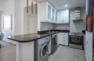 Внутри квартиры гости найдут одну спальню с одной кроватью и две ванны с ваннами и фенами для волос. Полностью оборудованная мини-кухня включает варочную панель, холодильник, кухонную утварь, принадлежности для чая и кофе, а также обеденный стол для комфортного приготовления еды. Дополнительные удобства включают кондиционер воздуха, гладильную доску с утюгом, постельное белье и полотенца, зону отдыха с диваном, сейф и стиральную машину.