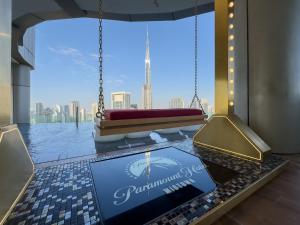 Apartmán Elite Rooftop Pool and Burj Khalifa Panorama s 2 ložnicemi v Paramount Hotel Midtown v Dubaji nabízí střešní bazén a wellness centrum. Nachází se jen pár kroků od Burj Khalifa a 0,7 km od Dubai Mall. Tento klimatizovaný apartmán má jeden pokoj s výhledem na město, který hostům poskytuje jedinečné spojení komfortu a luxusu.