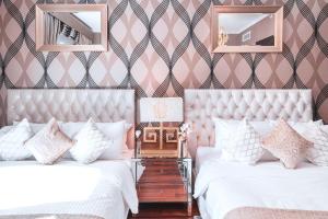 Accommodation comprises two bedrooms, a living room with seating area including a sofa bed, and two bathrooms fitted with walk-in showers and complimentary toiletries. The fully equipped kitchen features an oven, stovetop, microwave, dishwasher, refrigerator as well as tea and coffee making facilities. Additional in-room amenities include hardwood flooring, an ironing board with iron, a work desk, wardrobe space, baby cot or crib availability, towels and bed linen.