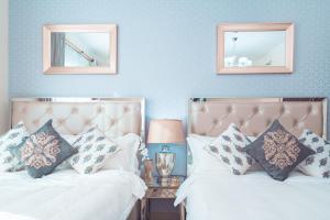 Zakwaterowanie obejmuje trzy sypialnie — dwie oddzielne oraz jedną otwartą bez przegród. Goście mają do dyspozycji dwie łazienki wyposażone w prysznice typu walk-in, wanny oraz zestaw bezpłatnych kosmetyków (szampon, mydło do ciała) i suszarkę do włosów. W pełni wyposażona kuchnia zawiera płytę grzewczą, lodówkę, piekarnik, mikrofalówkę i zmywarkę oraz ekspres do kawy i toster. Dodatkowo dostępne są sprzęty do prasowania wraz z deską do prasowania, garderoba ze strefą przebieralni, część wypoczynkowa z rozkładaną sofą i biurkiem oraz pościel wraz z ręcznikami.