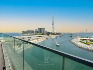 Appartamento Emaar Marina 2 camere da letto nell'edificio 52-42 T2 con vista panoramica completa sulla marina di ANW Vacation Homes, situato a Dubai, offre una piscina privata e una vista mozzafiato sulla marina. A soli 1,2 km da Hidden Beach, questo spazioso appartamento dispone di una camera e regala rilassanti viste sul fiume e sulla piscina.
