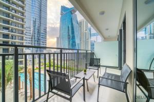 Dotato di aria condizionata e vista sulla piscina, l'Exclusive Offer Delightful 1BR with Pool Views by Deluxe Holiday Homes si trova a Dubai, a soli 2,9 km dal Burj Khalifa e a 3 km dalla Fontana di Dubai. Questo appartamento comprende una camera da letto e offre un balcone con vista sulla città.