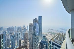 Das exklusive Penthouse im Torch Tower in Dubai Marina verfügt über einen Dachpool und kostenlose private Parkplätze und befindet sich nur 600 Meter vom Barasti Beach entfernt. Die geräumige Wohnung umfasst vier Schlafzimmer, drei Badezimmer und bietet von ihrem Balkon aus einen atemberaubenden Meerblick.