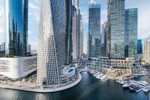 Ekskluzywny dom przy marinie z panoramicznym widokiem na jachty znajduje się w Dubaju, zaledwie 1 km od plaży Marina Beach. Ten przestronny apartament typu studio oferuje zachwycający widok na morze z balkonu.