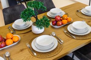 Inside, the accommodation includes three bedrooms featuring three beds, complemented by three bathrooms equipped with hairdryers as well as shampoo and body soap. The fully fitted kitchen boasts modern appliances such as a dishwasher, oven, stovetop, refrigerator, microwave, tea and coffee making facilities plus a high chair for children. Additional in-room amenities include air conditioning, a washing machine, ironing facilities including an iron and clothes drying rack, towels and bed linen along with a work desk.