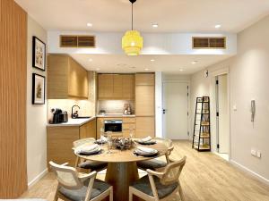 El alojamiento climatizado incluye un dormitorio, una sala de estar con televisión inteligente con servicios de streaming y un baño equipado con zapatillas. La cocina americana completa cuenta con placa eléctrica, frigorífico, lavavajillas, horno, microondas, tostadora, cafetera y hervidor eléctrico junto con utensilios de cocina y facilidades para preparar té y café. Entre las comodidades adicionales están plancha y tabla para planchar, lavadora, escritorio para trabajar, caja fuerte personalizada y opciones para cuna o cama infantil así como calefacción.