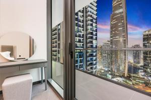 Das 3-Sterne FIRST CLASS 3BR Elegant Comfort Apartment in Dubai bietet Seeblick und einen Pool mit Aussicht. Es befindet sich nur 2,6 km vom Marina Beach und 4,1 km von The Walk at JBR entfernt. Das geräumige Apartment umfasst drei Schlafzimmer und vier Badezimmer.