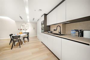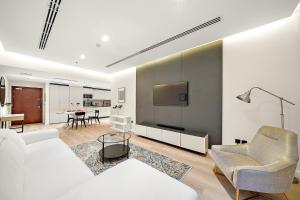 Inside the air-conditioned unit, guests will find a fully equipped kitchen featuring an oven, stovetop, microwave, refrigerator, toaster, coffee machine and electric kettle alongside tea and coffee making facilities. The apartment also boasts one bed with linens provided plus ironing facilities including an iron and ironing board. Additional in-room amenities include a flat-screen TV, washing machine, sofa seating area, clothes drying rack and a safety deposit box for valuables.