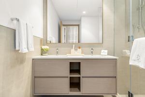 В квартире имеются две спальни и две ванные комнаты с ваннами или душевыми кабинами, биде, предоставляются туалетные принадлежности бесплатно (шампунь и кондиционер), тапочки, фен и мыло для тела. Полностью оборудованная кухня оснащена духовкой, посудомоечной машиной, холодильником, микроволновой печью тостером кофемашиной мини-кухней и столовой зоной для удобства гостей. Дополнительные удобства включают кондиционирование во всех комнатах вместе со стиральной машиной и телевизором с плоским экраном.