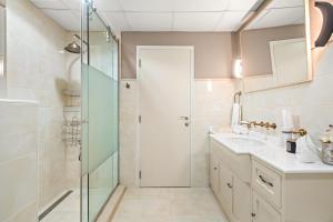 K vybavení patří tři koupelny s vanou nebo sprchou a bezplatnými toaletními potřebami jako šampon, kondicionér, tělové mýdlo, pantofle, vysoušeč vlasů a bidet. Hosté mohou využívat klimatizaci po celém apartmánu i pohodlné posezení se sedací soupravou a televizí s plochou obrazovkou. Dále jsou k dispozici žehlička s žehlícím prknem, trezor, šatna, pračka a povlečení.