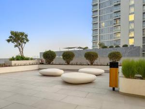 El apartamento también se encuentra cerca del Burj Khalifa, a 9,3 km, y del Dubai Mall, a 10 km. El City Walk Mall está a solo 11 km, mientras que el Centro de Convenciones de Dubái se sitúa a 13 km. El Aeropuerto Internacional de Dubái queda a 18 km.
