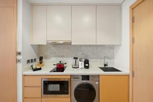 This air-conditioned apartment comprises one bedroom with one bed and one bathroom equipped with a shower and bidet. Guests can prepare meals in the fully equipped kitchen that includes an oven, microwave, stovetop, refrigerator, toaster, coffee machine, electric kettle as well as tea and coffee making facilities. Additional room amenities include heating, ironing facilities with iron and ironing board, safe deposit box, sofa seating area and washing machine.