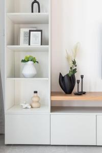 El apartamento dispone de una sala de estar, un dormitorio independiente con dos camas y dos baños equipados con bañera y secador de pelo. Los huéspedes pueden disfrutar además de una cocina americana totalmente equipada con horno, placa vitrocerámica, microondas, frigorífico, hervidor eléctrico y utensilios para preparar té o café. Entre las comodidades adicionales en la habitación destacan el aire acondicionado, tabla y plancha para ropa e incluso lavadora, también se proporcionan ropa de cama y toallas.
