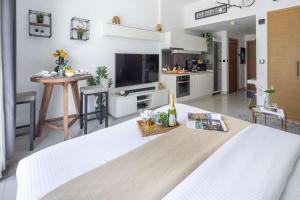 Tento studiový apartmán má plně vybavený kuchyňský kout s troubou, varnou deskou, mikrovlnnou troubou, lednicí, elektrickým konvicí, přípravou na čaj a kávu, kuchyňským nádobím a dětskou židličkou. Součástí jednotky je jedna postel a žehlicí potřeby zahrnující žehličku a žehlící prkno. Hosté najdou ručníky i ložní prádlo včetně soukromé koupelny vybavené šamponem, fénem na vlasy a vanou.