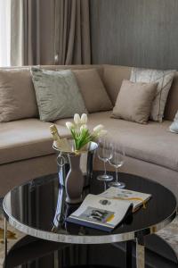Apartament oferuje dwie sypialnie oraz dwie łazienki wyposażone w wannę i bezpłatne kosmetyki — szampon oraz suszarkę do włosów. Goście mogą przygotowywać posiłki w całkowicie wyposażonym aneksie kuchennym z płytą grzewczą, piekarnikiem, zmywarką, mikrofalówką, lodówką oraz naczyniami kuchennymi. Do dyspozycji jest także ekspres do kawy i herbata oraz stół jadalny. Dodatkowe udogodnienia obejmują żelazko i deskę do prasowania, pralkę automatyczną, klimatyzację na terenie całego apartamentu oraz telewizję kablową.