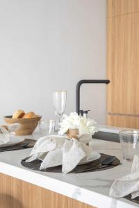 Accommodation consists of one bedroom along with a full kitchen that includes modern appliances such as a refrigerator, stovetop, oven, dishwasher, microwave and electric kettle. Additional conveniences include kitchenware for cooking needs and tea and coffee making facilities alongside a dining table with high chair for children. The bathroom features private facilities complete with hairdryer, shampoo and conditioner while in-room amenities cover air conditioning, washing machine access as well as ironing equipment including iron and ironing board, bed linen and towels are also provided.