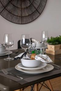 W apartamencie dostępny jest w pełni wyposażony aneks kuchenny ze stołem grzewczym, piekarnikiem, lodówką, zmywarką, mikrofalówką oraz naczyniami kuchennymi. Goście mogą korzystać z klimatyzacji, ogrzewania, pralki oraz ręczników i pościeli. Łazienka wyposażona jest w szampon, wannę i suszarkę do włosów. Dodatkowo obiekt oferuje sprzęt do prasowania wraz z żelazkiem i deską do prasowania.