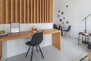Hosté zde najdou plně vybavený kuchyňský kout s troubou, varnou deskou, mikrovlnnou troubou, lednicí, kuchyňským nádobím i přípravou čaje a kávy spolu s elektrickým konvicí a sušičkou prádla. Ubytování má jedno lůžko a disponuje klimatizací, topením i žehlicími potřebami včetně žehličky a žehlícího prkna. K dispozici je také pračka, apartmán nabízí ručníky, povlečení i bezbariérový přístup.
