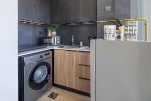 W apartamencie typu studio znajduje się jedno łóżko oraz podstawowe udogodnienia, takie jak prywatna łazienka wyposażona w szampon, odżywkę do włosów, bezpłatne kosmetyki oraz suszarkę do włosów. Dodatkowo dostępna jest klimatyzacja, żelazko wraz z deską do prasowania, szafa oraz pralka dla wygody gości.