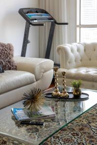 Apartmán disponuje třemi ložnicemi a třemi koupelnami vybavenými vysoušečem vlasů a bezplatnými toaletními potřebami včetně šamponu a kondicionéru. Hosté si mohou připravit jídlo v plně vybaveném kuchyňském koutě s troubou, mikrovlnnou troubou, varnou deskou, lednicí, nádobím, jídelním stolem s vysokou židlí pro děti i čajovým setem s rychlovarnou konvicí. Další vybavení zahrnuje klimatizaci, pračku, žehlicí potřeby (žehličku a žehlící prkno), úložný prostor na oblečení oraz povlečení i ručníky.