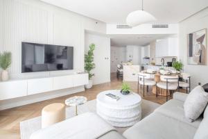 L’ampio appartamento comprende un soggiorno, due camere separate e due bagni dotati di vasca e prodotti da bagno gratuiti quali shampoo e balsamo. Gli ospiti troveranno tre letti oltre alla climatizzazione su tutta la superficie dell’unità. La cucina completamente attrezzata dispone di elettrodomestici moderni come piano cottura, frigorifero, lavastoviglie, forno, microonde e bollitore elettrico oltre ad angolo cottura per tè e caffè, sono inoltre presenti stoviglie e tavolo da pranzo per la preparazione dei pasti.