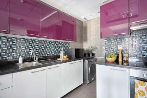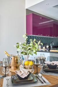 Tento dobře vybavený apartmán obsahuje dvě ložnice a tři koupelny s bezplatnými toaletními potřebami, šamponem, kondicionérem, vysoušečem vlasů a vanami. Hosté ocení plně vybavený kuchyňský kout se sporákem, troubou, mikrovlnnou troubou, lednicí, elektrickou konvicí i přípravou čaje a kávy. Další zařízení v pokoji zahrnují pračku, žehlicí potřeby s žehličkou a žehlícím prknem, ručníky, ložní prádlo, skříň na oblečení i kabelovou televizi.