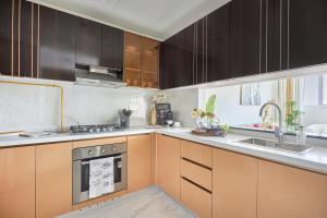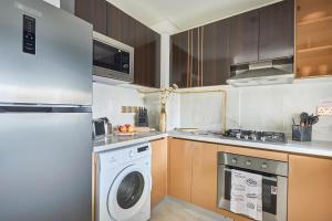 L’appartamento dispone di due camere da letto con un totale di due letti e due bagni privati dotati di articoli da toilette gratuiti quali shampoo, balsamo e asciugacapelli. Gli ospiti possono usufruire di comfort in camera come aria condizionata, ferro da stiro con asse, scrivania per il lavoro e armadio. La cucina completamente attrezzata include piano cottura, forno, microonde, frigorifero oltre ad angolo cottura per tè e caffè nonché stoviglie per la comodità durante i pasti.