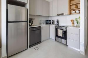Apartmán má jednu ložnici s jednou postelí a soukromou koupelnu s vanou, bezplatnými toaletními potřebami jako jsou šampon a kondicionér, fénem na vlasy a dalšími základními doplňky. Plně vybavená kuchyň obsahuje moderní spotřebiče včetně trouby, varné desky, mikrovlnné trouby, ledničky, myčky nádobí, sušičky prádla a kuchyňského náčiní. Další vybavení pokoje zahrnuje klimatizaci, povlečení, ručníky, skříň nebo úložný prostor na oblečení, žehličku s žehlícím prknem i pračku.