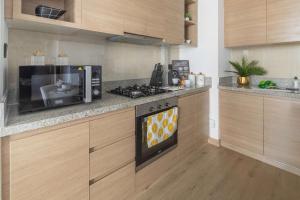 L’appartamento dispone di una camera con un letto singolo, due bagni con vasca da bagno e bidet, oltre a servizi per stirare inclusi ferro e asse da stiro. La cucina completa è attrezzata con piano cottura, forno, microonde, frigorifero, bollitore elettrico, macchinetta per tè e caffè, utensili da cucina e seggiolone per bambini. Tra gli altri comfort vi sono lavatrice, stendibiancheria, zona salotto con divano nonché asciugamani e biancheria da letto.
