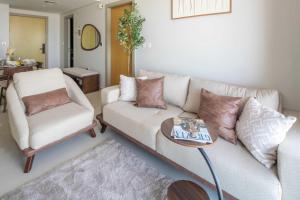 This spacious apartment consists of one living room, two separate bedrooms, and three bathrooms equipped with bathtubs and complimentary toiletries. The fully equipped kitchen comes with an oven, stovetop, refrigerator, dishwasher, microwave, electric kettle, tea and coffee making facilities, dining table, and kitchenware. Additional in-room amenities include air conditioning, towels and bed linen provided, ironing facilities with iron and ironing board, washing machine, television with cable channels as well as full wheelchair accessibility.