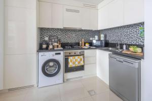 The spacious apartment accommodates guests with two bedrooms and three bathrooms fitted with bathtubs and complimentary toiletries including shampoo. The fully equipped kitchen boasts a stovetop, refrigerator, dishwasher, oven, microwave, electric kettle, kitchenware, tea and coffee making facilities along with a dining table. Additional room amenities include air conditioning, a washing machine, ironing facilities with iron and ironing board, bed linen and towels. Entertainment options feature a TV with cable channels.