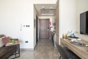 Die klimatisierte Unterkunft Frank Porter - Majestique Residence 2 in Dubai verfügt über eine Kochnische und eine Terrasse. Das Apartment umfasst ein Zimmer und bietet bequeme Parkmöglichkeiten vor Ort, Zugang zu einem Außenpool sowie einen Aufzug.