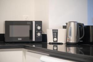 Do dyspozycji gości są dwie sypialnie z trzema łóżkami oraz trzy łazienki wyposażone w wanny i suszarki do włosów. Goście mogą przygotowywać posiłki w pełni wyposażonym aneksie kuchennym, który zawiera piekarnik, mikrofalówkę, płytę grzewczą, lodówkę, czajnik elektryczny oraz zestaw do parzenia herbaty i kawy. Dodatkowe udogodnienia obejmują klimatyzację, sprzęt do prasowania wraz z deską i żelazkiem, pralkę oraz ręczniki i pościel.