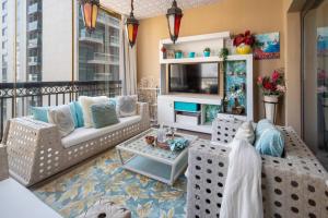 La propiedad también está convenientemente situada a 5,6 km del parque acuático Aquaventure y a 7,2 km de The Walk en JBR. El Aeropuerto Internacional Al Maktoum se encuentra a 30 km, facilitando opciones de transporte para los viajeros.