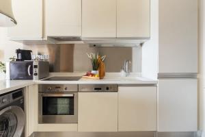 L’appartamento comprende un letto e un angolo cottura completamente attrezzato con forno, piano cottura, microonde, lavastoviglie, frigorifero, bollitore elettrico oltre ad accessori per tè e caffè. A disposizione degli ospiti vi sono anche ferro da stiro con asse da stiro e lavatrice. Per garantire il massimo comfort vengono forniti biancheria da letto e asciugamani.