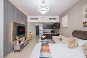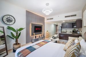 Situé à 2,1 km de Marina Beach, le studio meublé dans l'Arch Tower, JLT près du métro, est un appartement spacieux dans le quartier de Jumeirah Lakes Towers à Dubaï, offrant une piscine privée et un accès par ascenseur. Ce logement comprend une pièce bien aménagée ainsi qu’un parking privé gratuit et une terrasse avec vue extérieure.