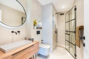 Ubytování zahrnuje dvě samostatné klimatizované ložnice s dvěma lůžky a tři koupelny vybavené vanou nebo sprchou i bidetem. Hosté mají k dispozici plně vybavený kuchyňský kout se troubou, varnou deskou, lednicí, myčkou nádobí, mikrovlnnou troubou, toustovačem, elektrickou konvicí a přípravou čaje i kávy spolu s jídelním stolem. V apartmánu nechybí televize s plochou obrazovkou, pračka, žehlička, rozkládací pohovka jako posezení, šatní skříň nebo skříň na oblečení, ručníky i povlečení na postele či dětská postýlka. Podlahy jsou kombinací dlaždic/mramoru a koberce.