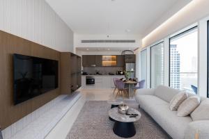 Located in Dubai's Palm Jumeirah district, Grand Bleu, Emaar Beachfront - Mint Stay includes 3 rooms and offers private entrances for guest convenience. This apartment boasts sea views from its balcony and features free WiFi alongside free private parking.