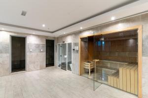 Guests benefit from numerous wellness features such as a year-round outdoor pool with kids' pool section alongside sauna and hot tub facilities within the apartment itself. A fitness centre complements these offerings while extra services include free WiFi throughout the premises, parking garage, lift access to rooms, express check-in/check-out, 24-hour front desk support, smoke detectors, carbon monoxide detectors plus fire extinguisher availability on site. Outdoor furniture is provided on terraces for relaxation or dining.