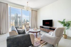 GuestReady - Downtown bliss with seaview to przestronny apartament z bezpłatnym WiFi i balkonem z widokiem na morze, położony w Dubaju, w niedalekiej odległości od Burdż Chalifa i Dubai Mall. Apartament składa się z jednego salonu oraz dwóch oddzielnych sypialni z trzema łóżkami łącznie. Do dyspozycji gości są dwa łazienki wyposażone zarówno w wannę, jak i prysznic.